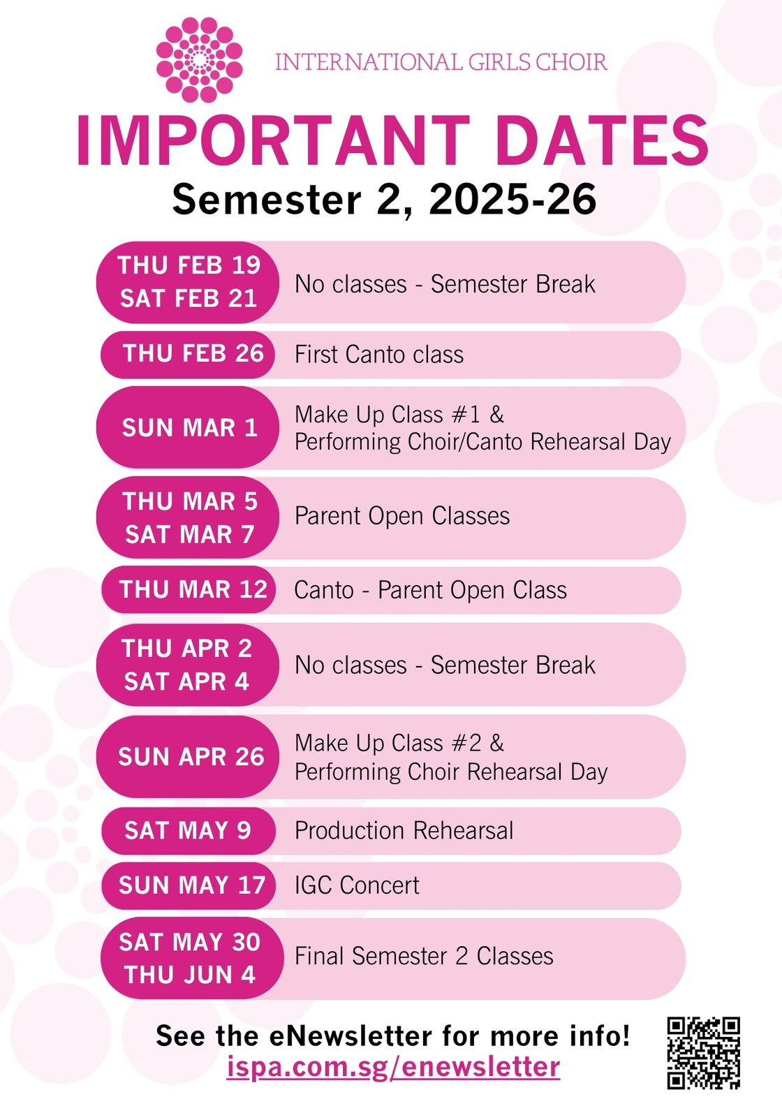 We genuinely value feedback from parents and girls so we encourage you to make contact with us if there is something you wish to discuss. We also appreciate you sharing the word about the IGC with other Singapore families and girls who love to sing, dance and perform; we're currently offering the opportunity for girls to try a free class to experience our dynamic program in action.